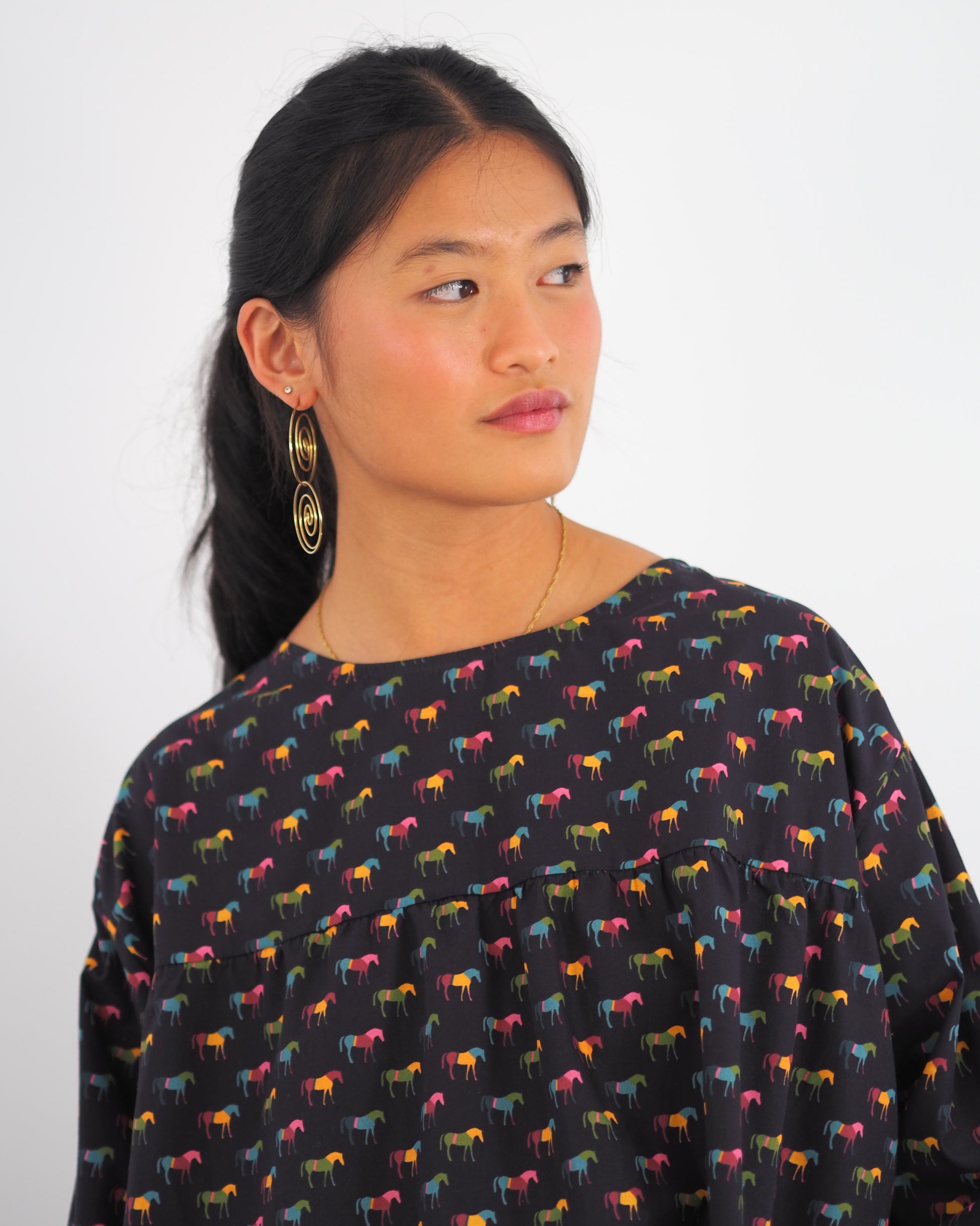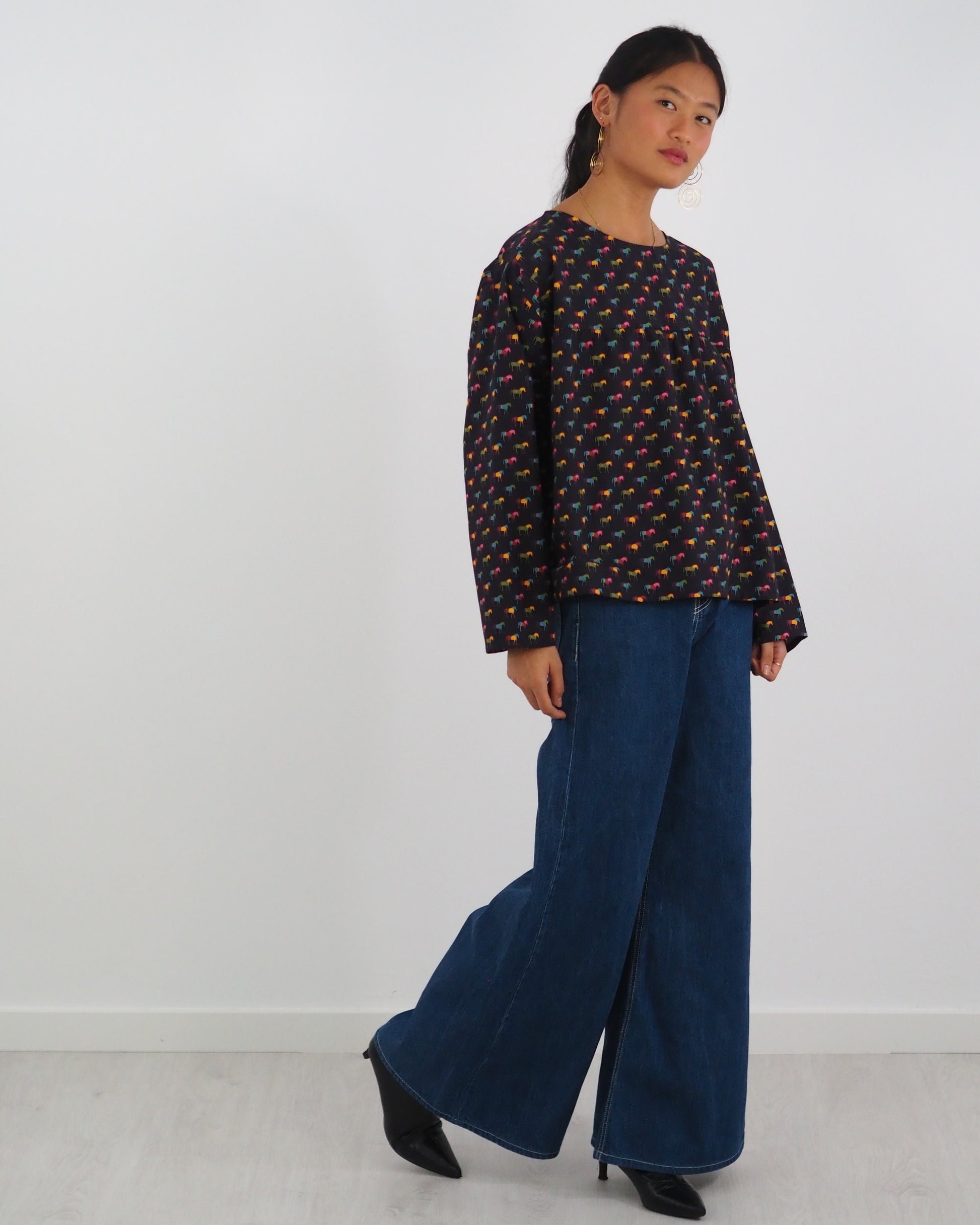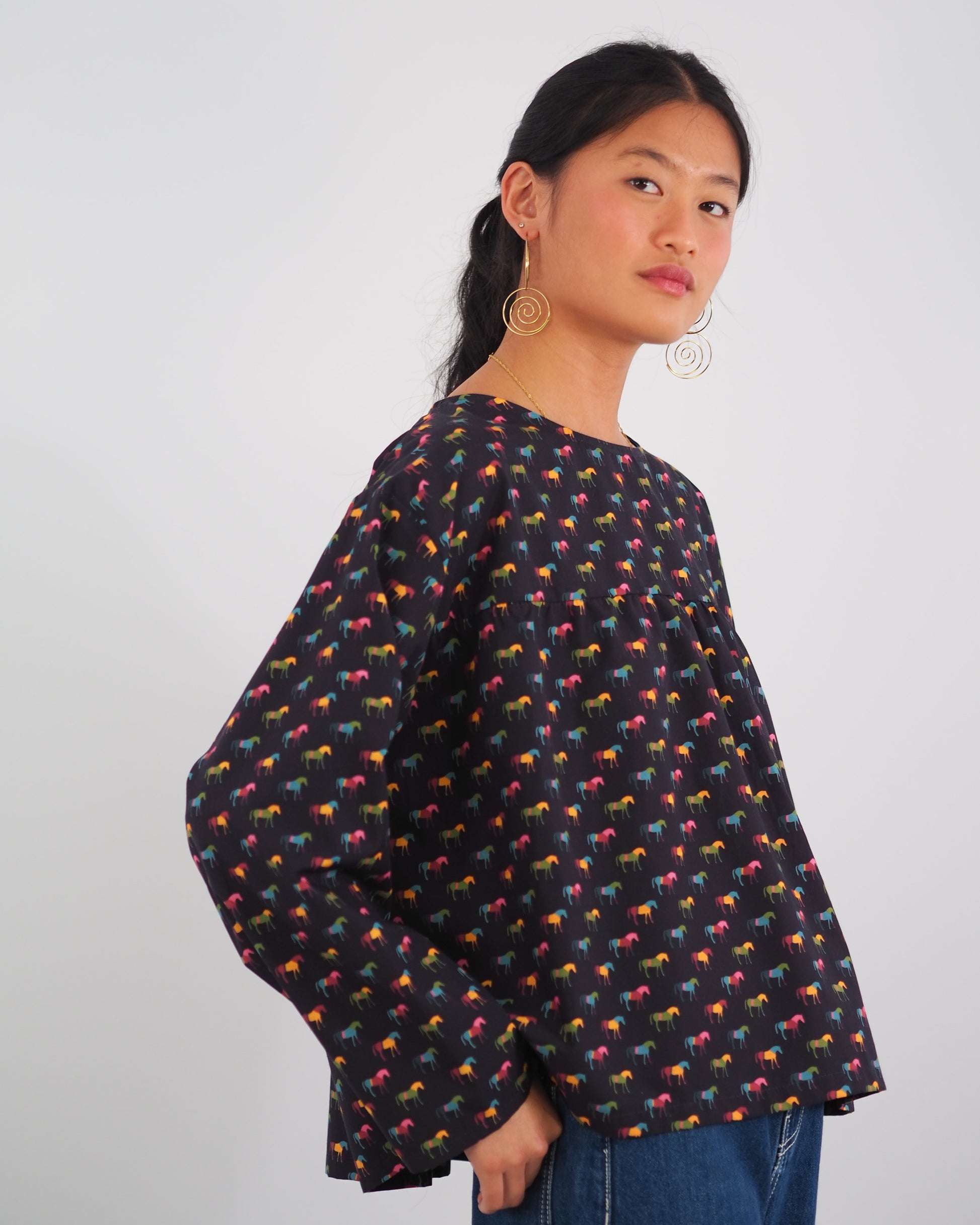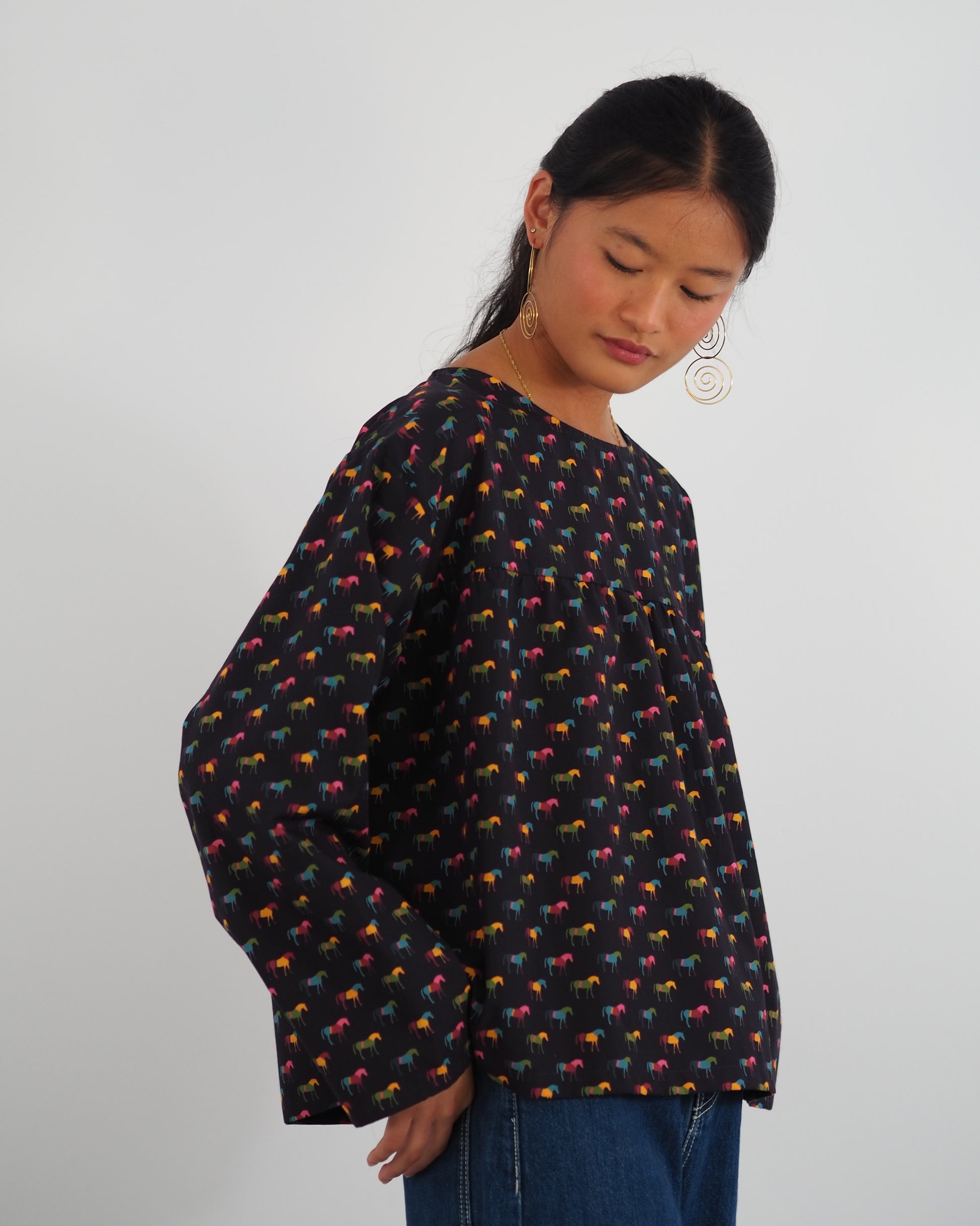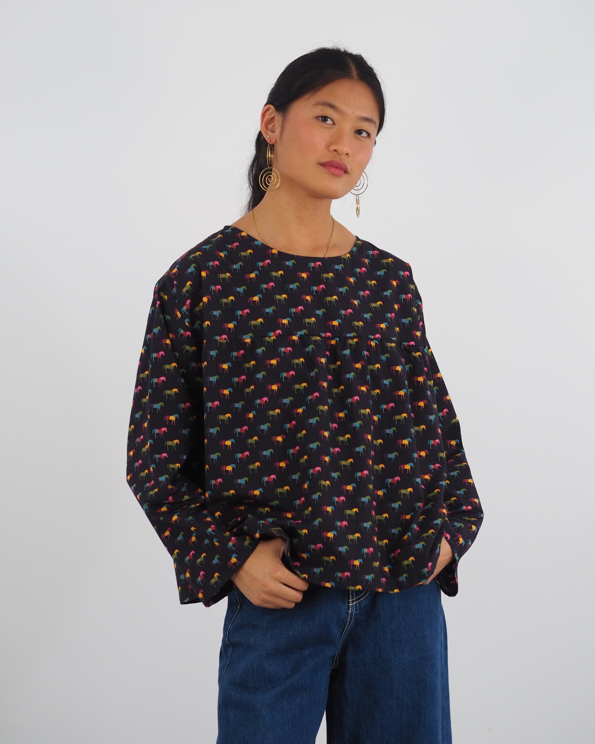 Esta camisa está realizada en un tejido mezcla de lana y algodón, tiene un corte en el pecho que hace que sea tremendamente favorecedora y que siente bien a muchas tallas y alturas, combina genial con nuestros chales!