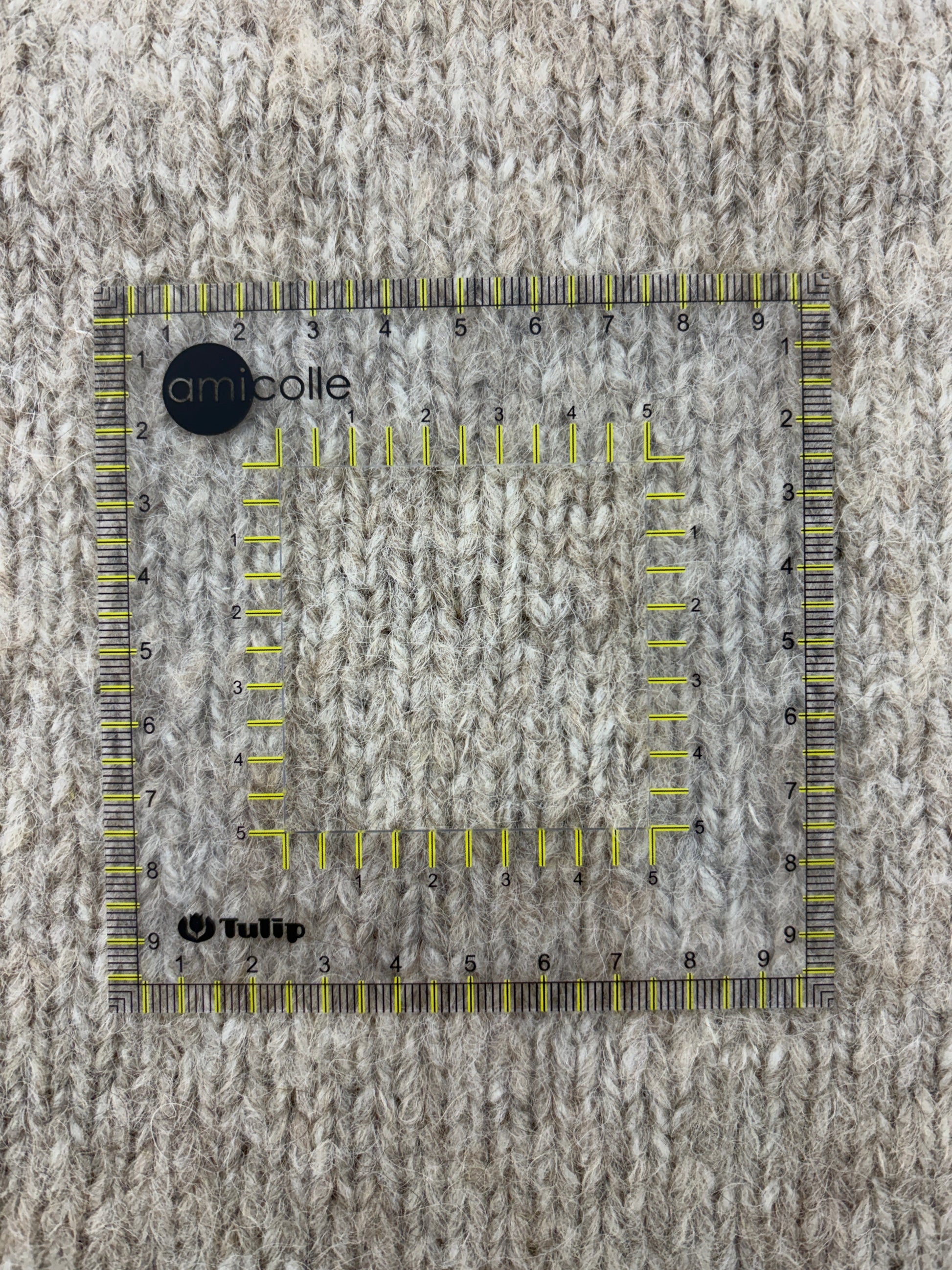 Con el Medidor de muestras Tulip puedes comprobar tu tensión de forma rápida, precisa y profesional. No es un simple contador de puntos: es un medidor de muestras pensado para verificar tu tensión de tejido con exactitud antes de empezar una prenda.
