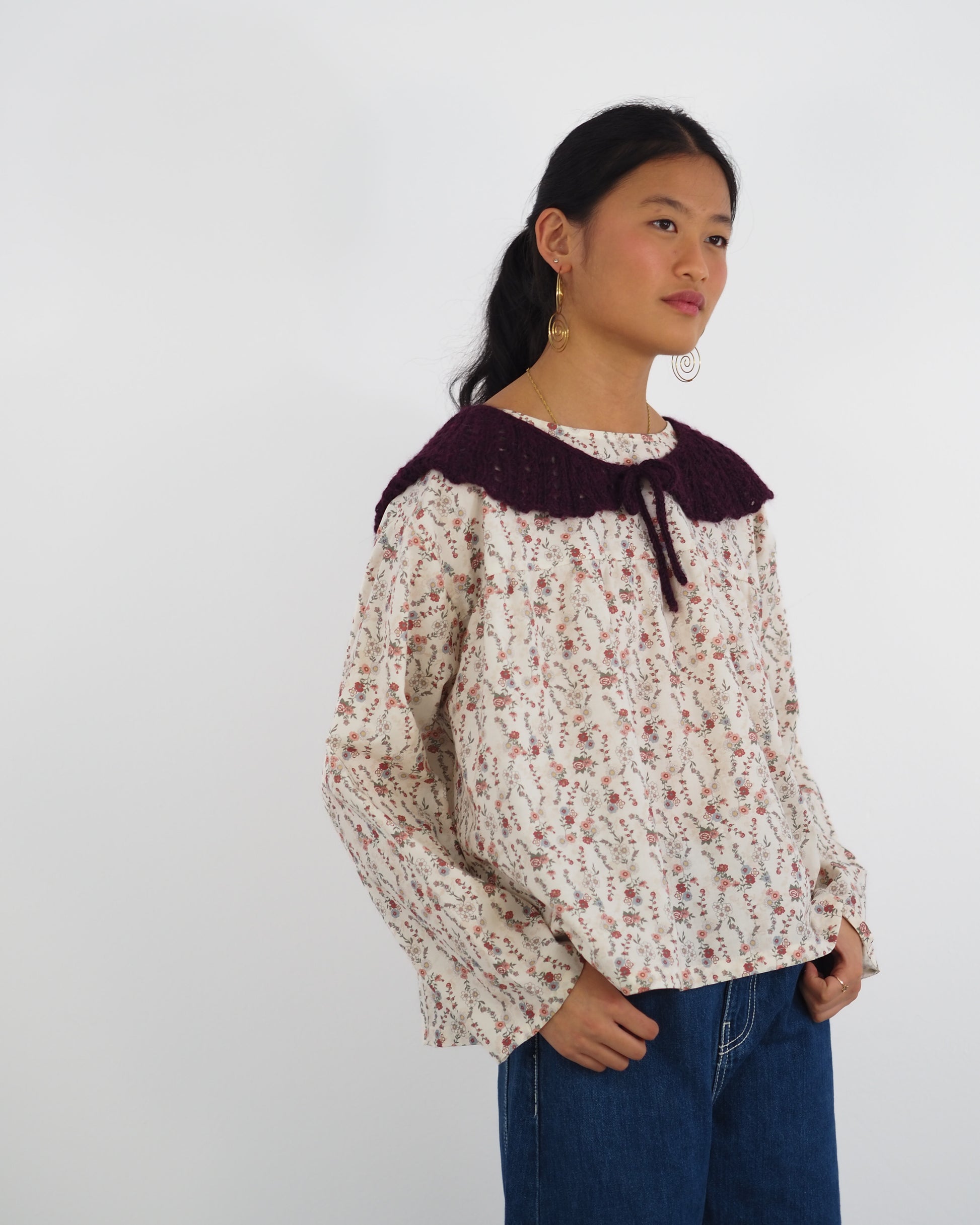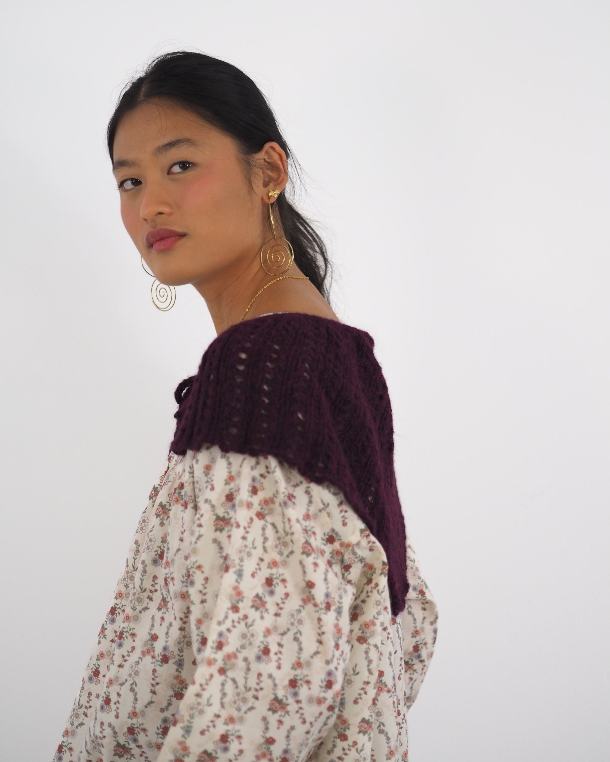 Esta pañoleta se teje de arriba a abajo empezando con un montaje en i-cord, del que se remontan los puntos y se teje todo el cuerpo de la pañoleta. A continuación, se cierran los puntos del cuerpo y se realizan los dos i-cords de los extremos.