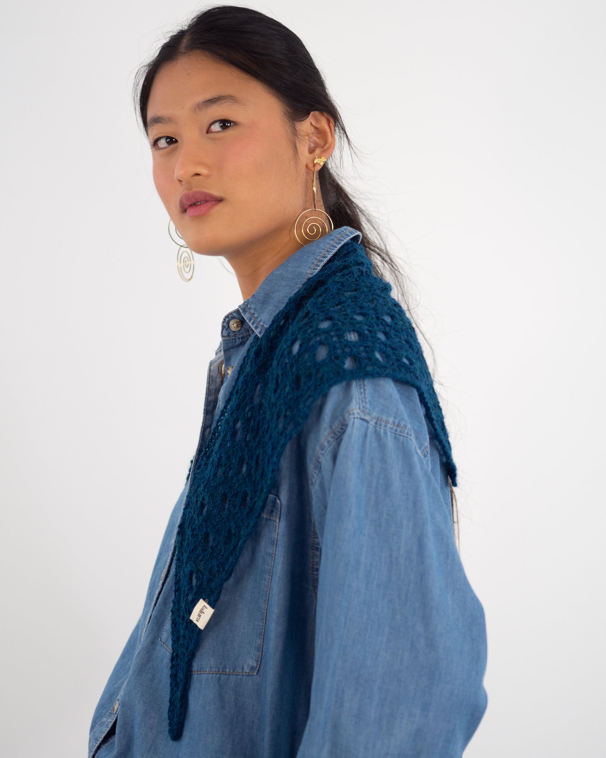 Dubra es una pañoleta pequeña, perfecta para llevar en el bolso y abrigar tu cuello en cualquier momento, sencilla de llevar puede elevar cualquier outfit con el simple gesto de llevarla puesta.