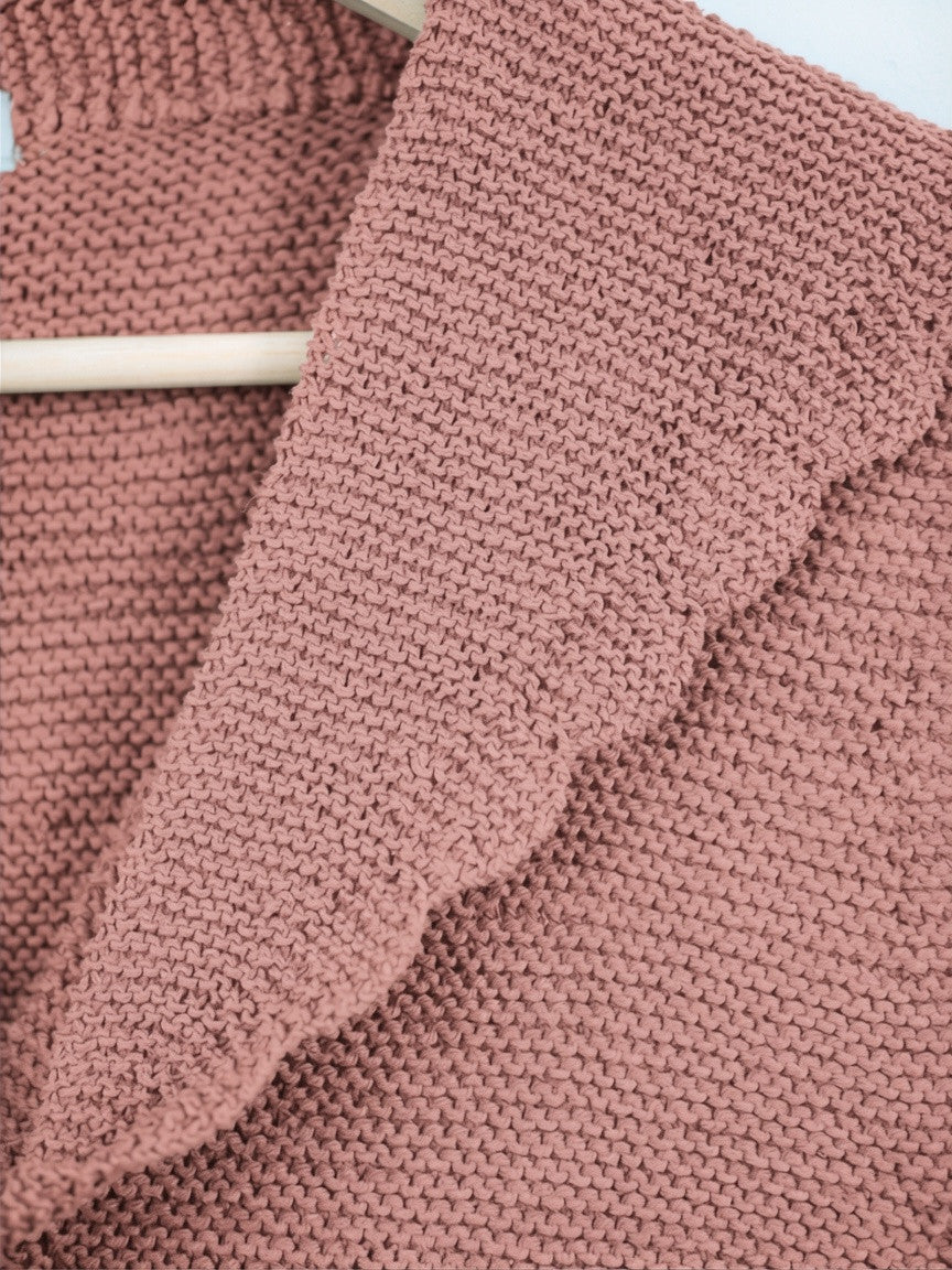 Este cuello se teje de lado a lado empezando por un extremo con una tira de 7 puntos, crece hacia el centro inferior y después decrece hasta volver a tener 7 puntos, se teje la segunda tira y se cierran los 7 puntos.