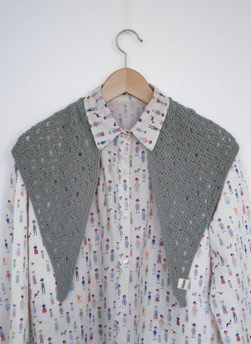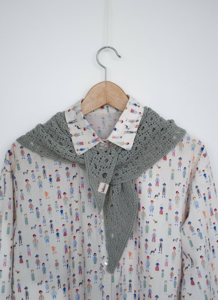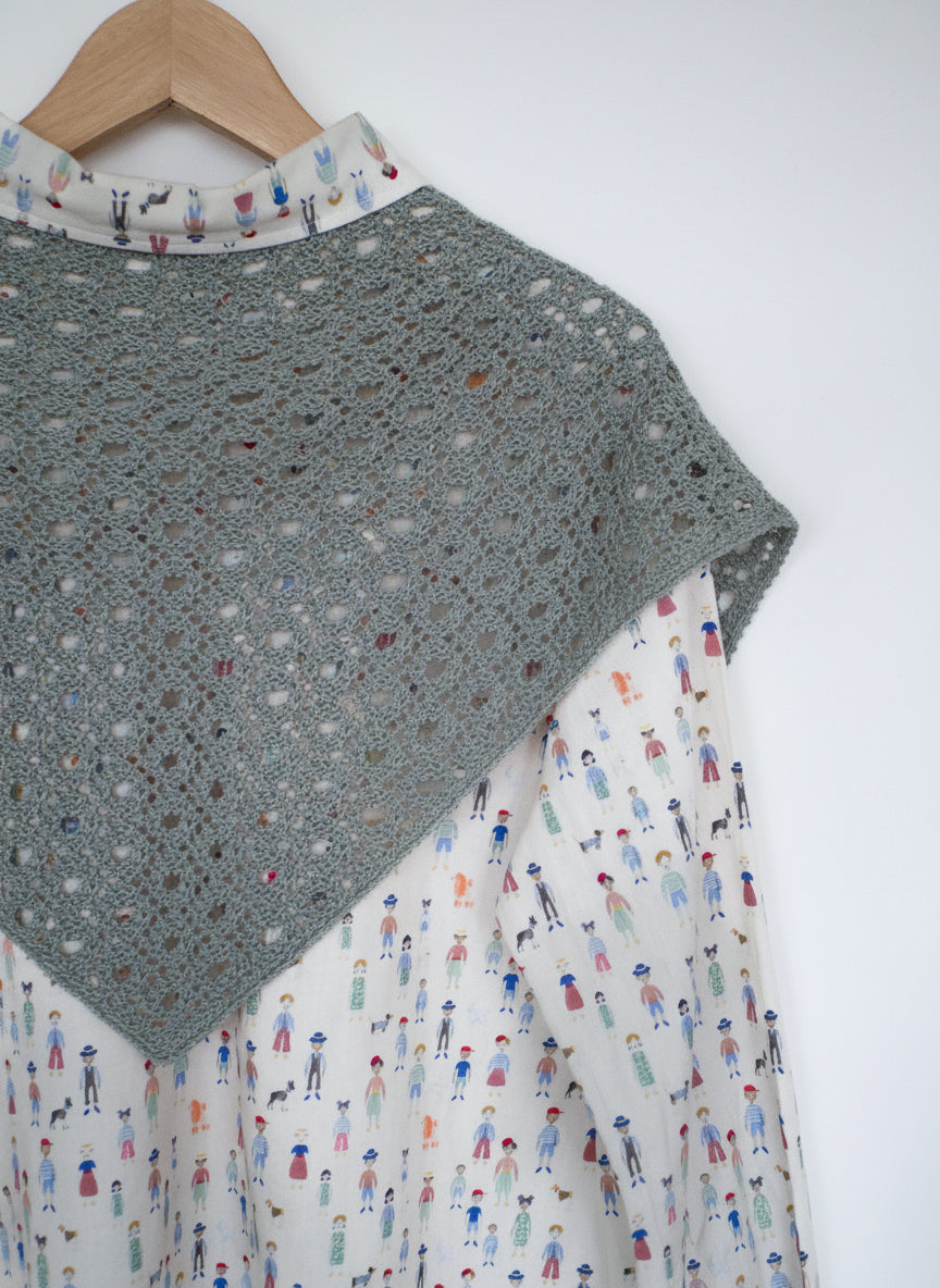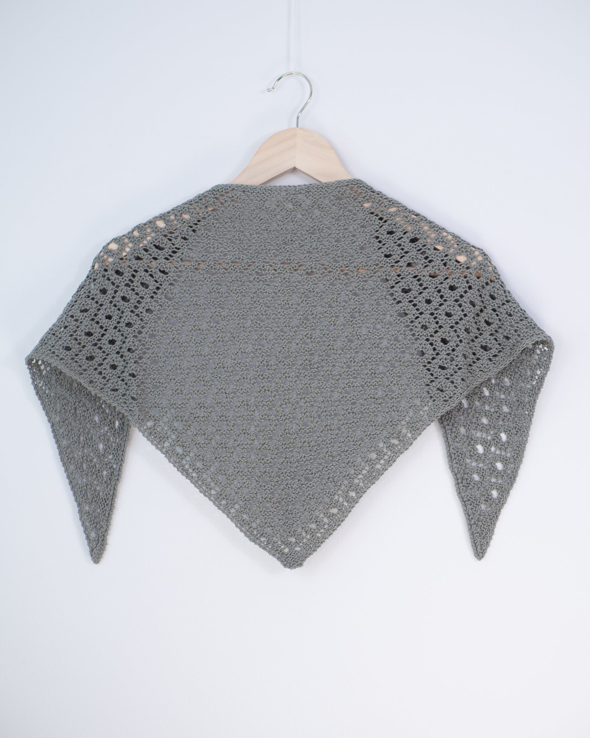 Esta pañoleta se teje de abajo a arriba, una vez alcanzado el tamaño deseado se cierran los puntos de la parte superior de la pañoleta perpendicularmente haciendo reducciones hasta que no quede ningún punto
