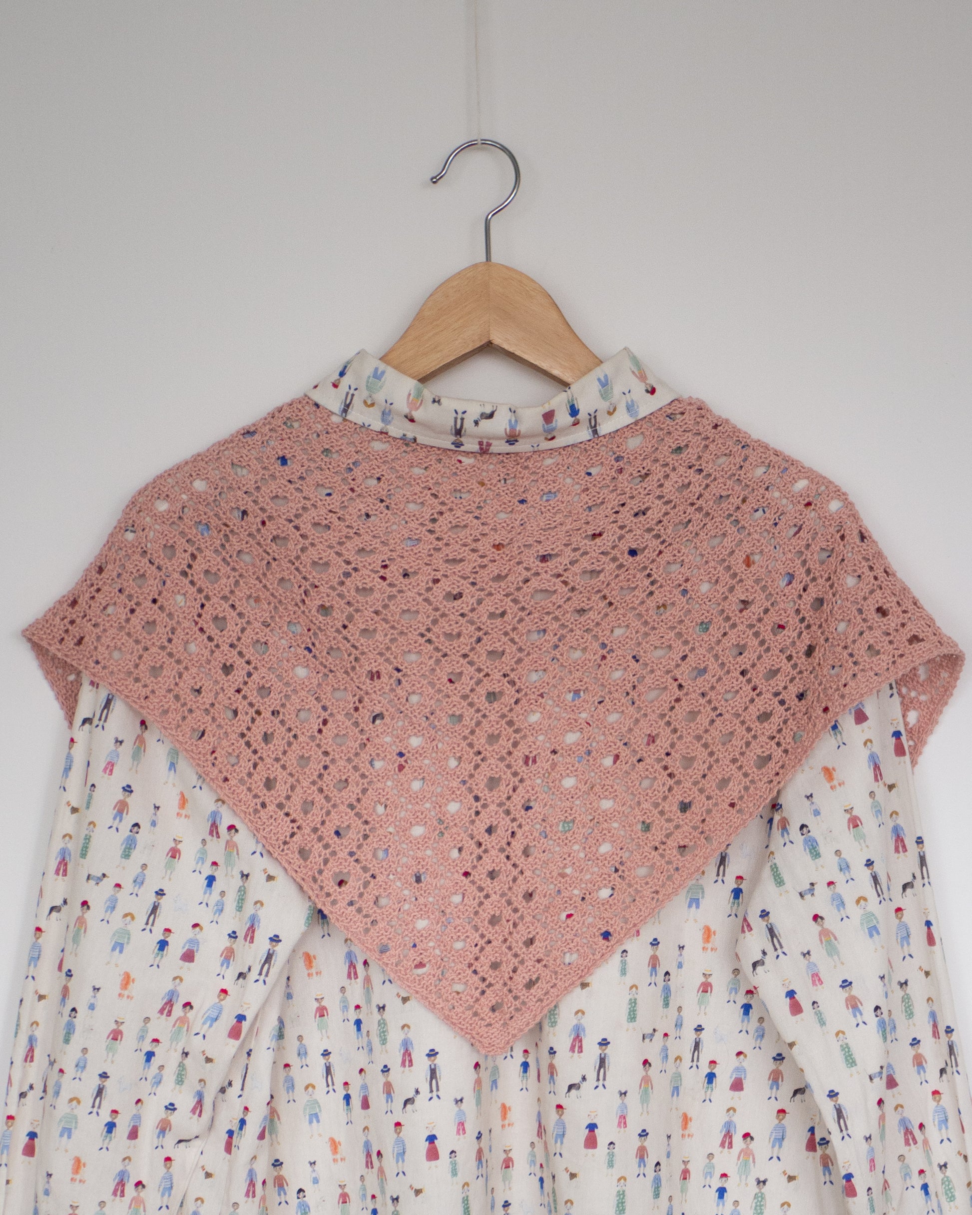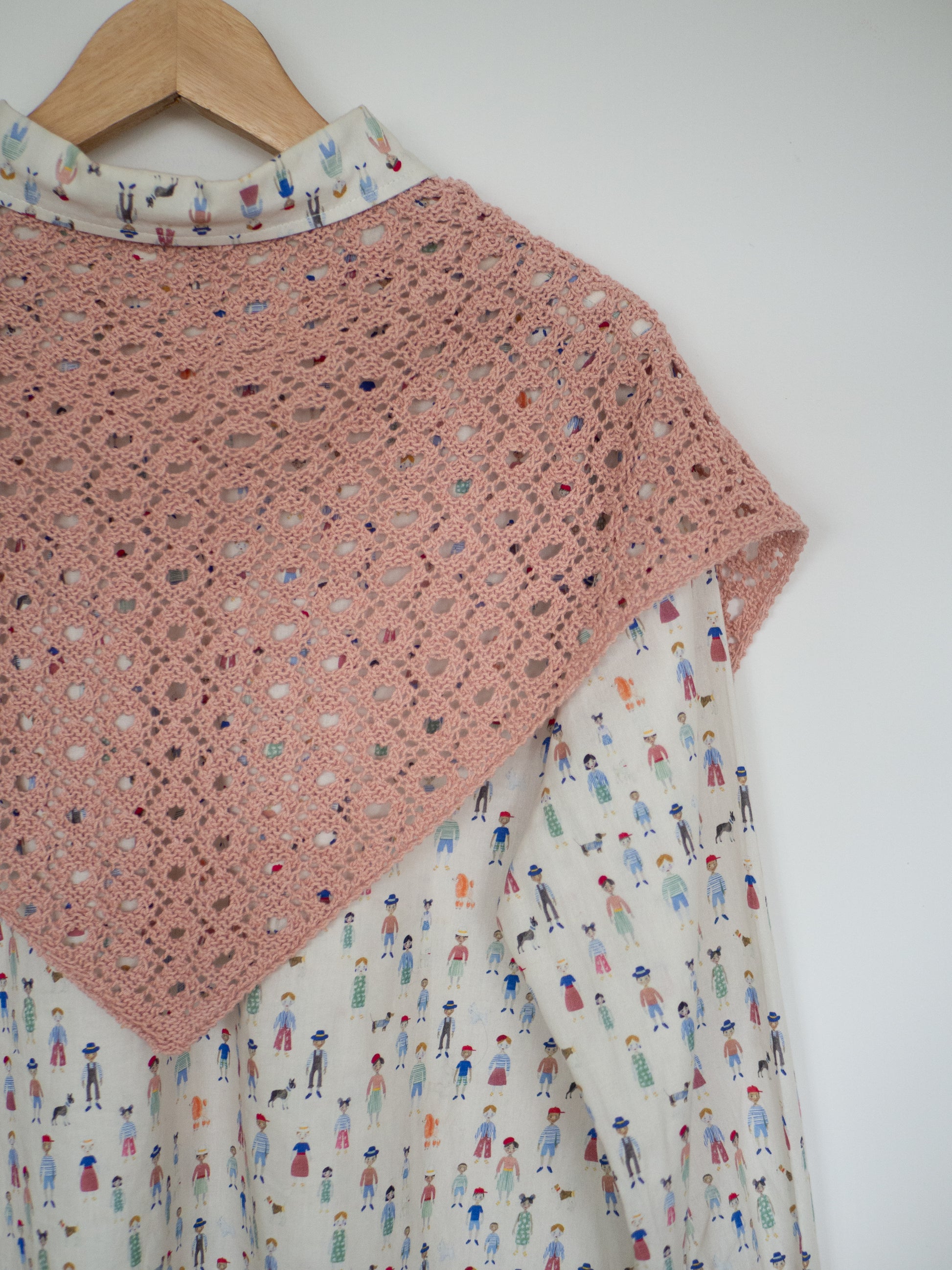 Esta pañoleta se teje de abajo a arriba, una vez alcanzado el tamaño deseado se cierran los puntos de la parte superior de la pañoleta perpendicularmente haciendo reducciones hasta que no quede ningún punto