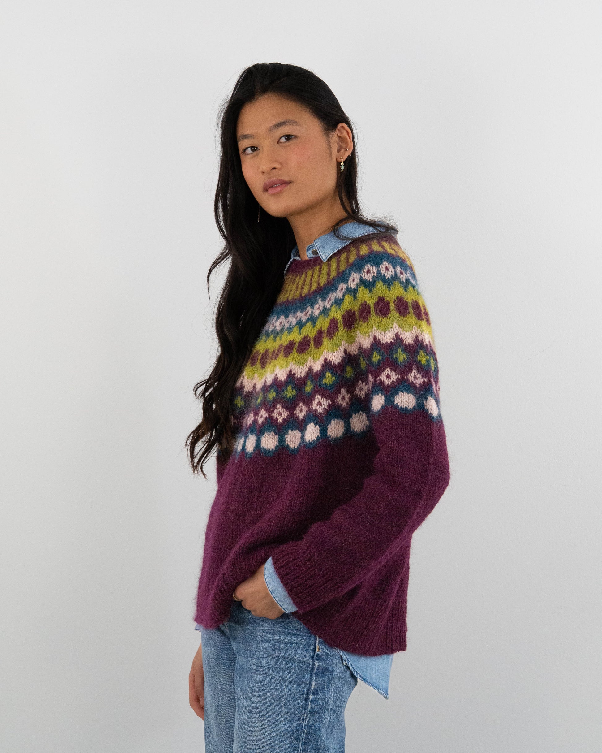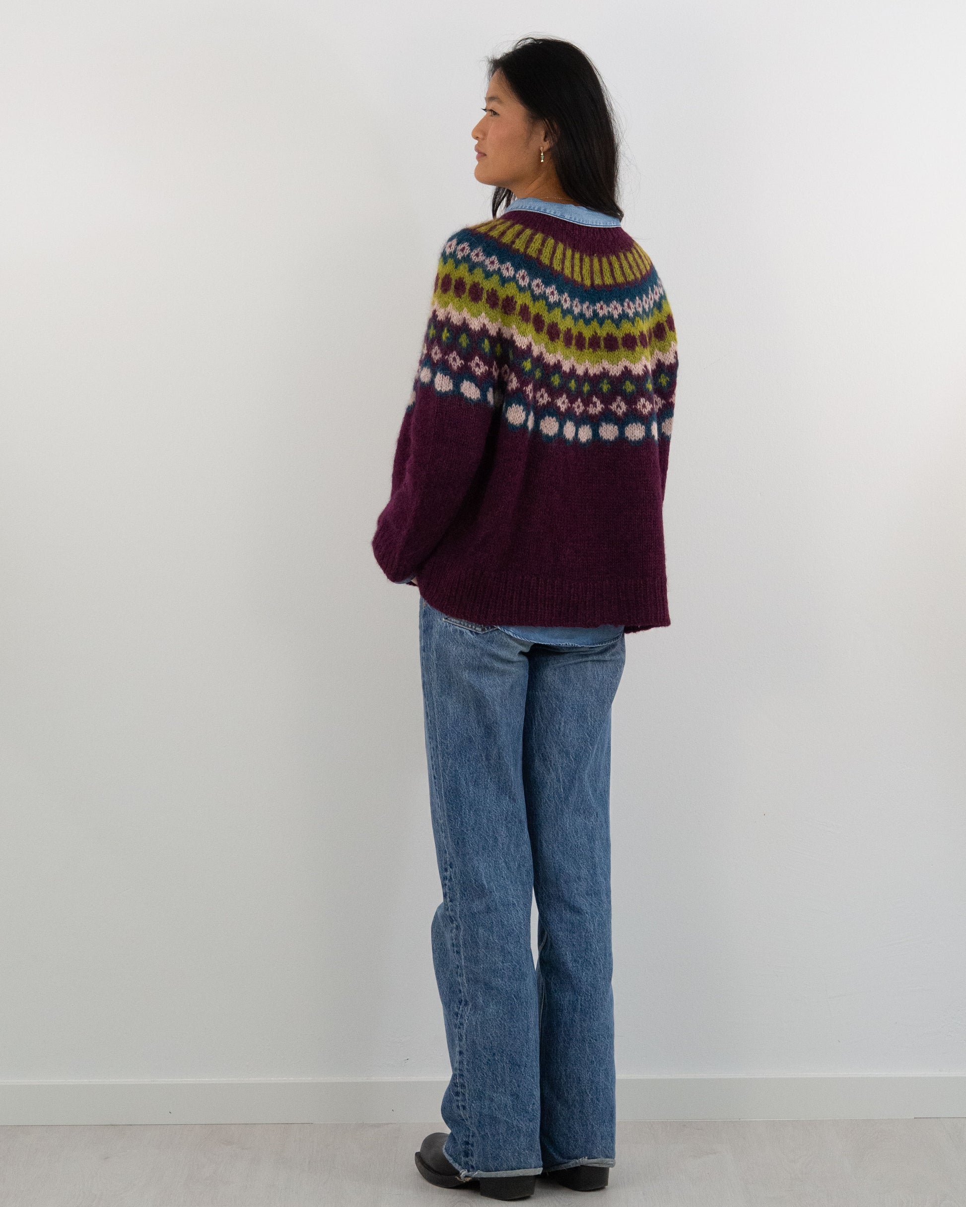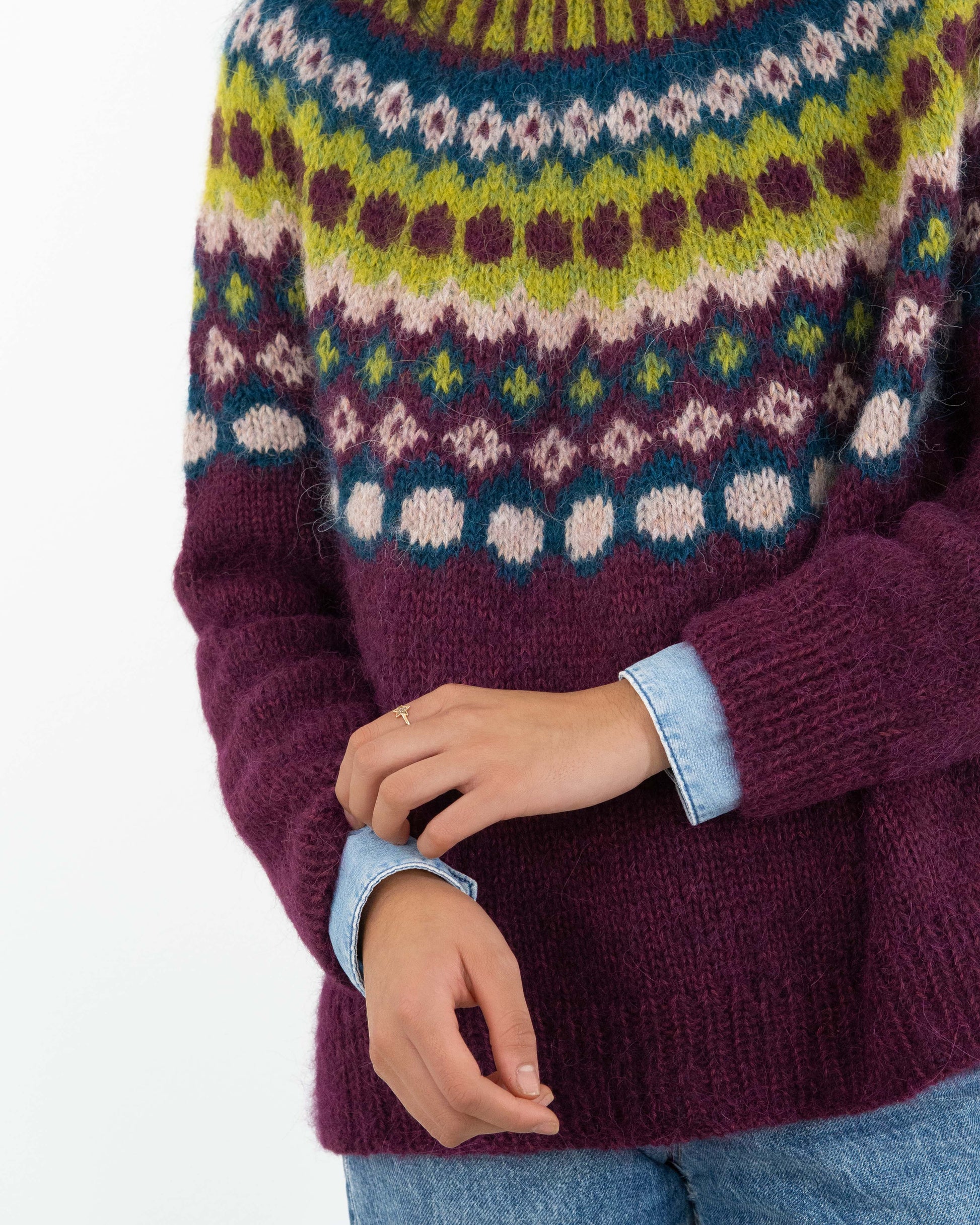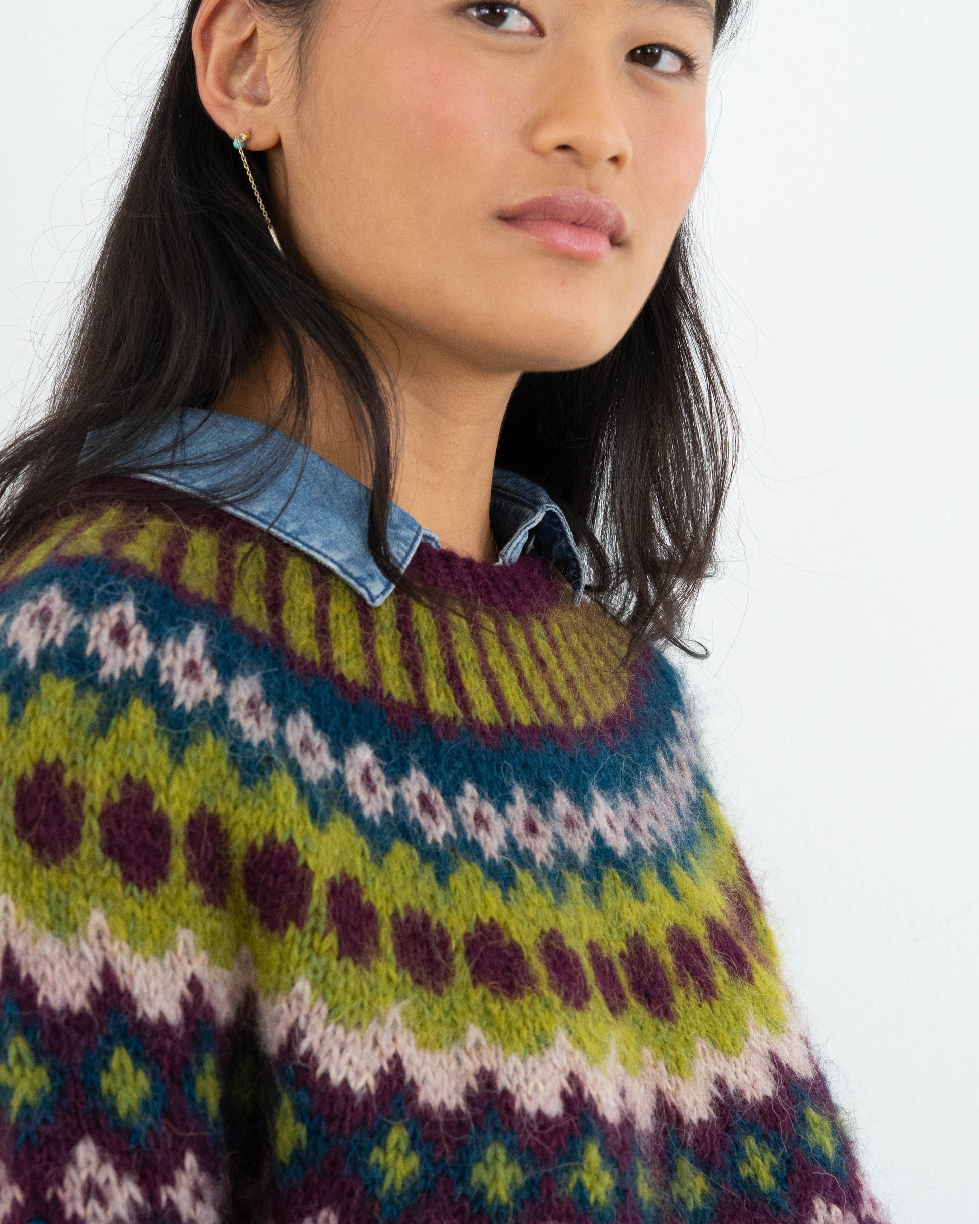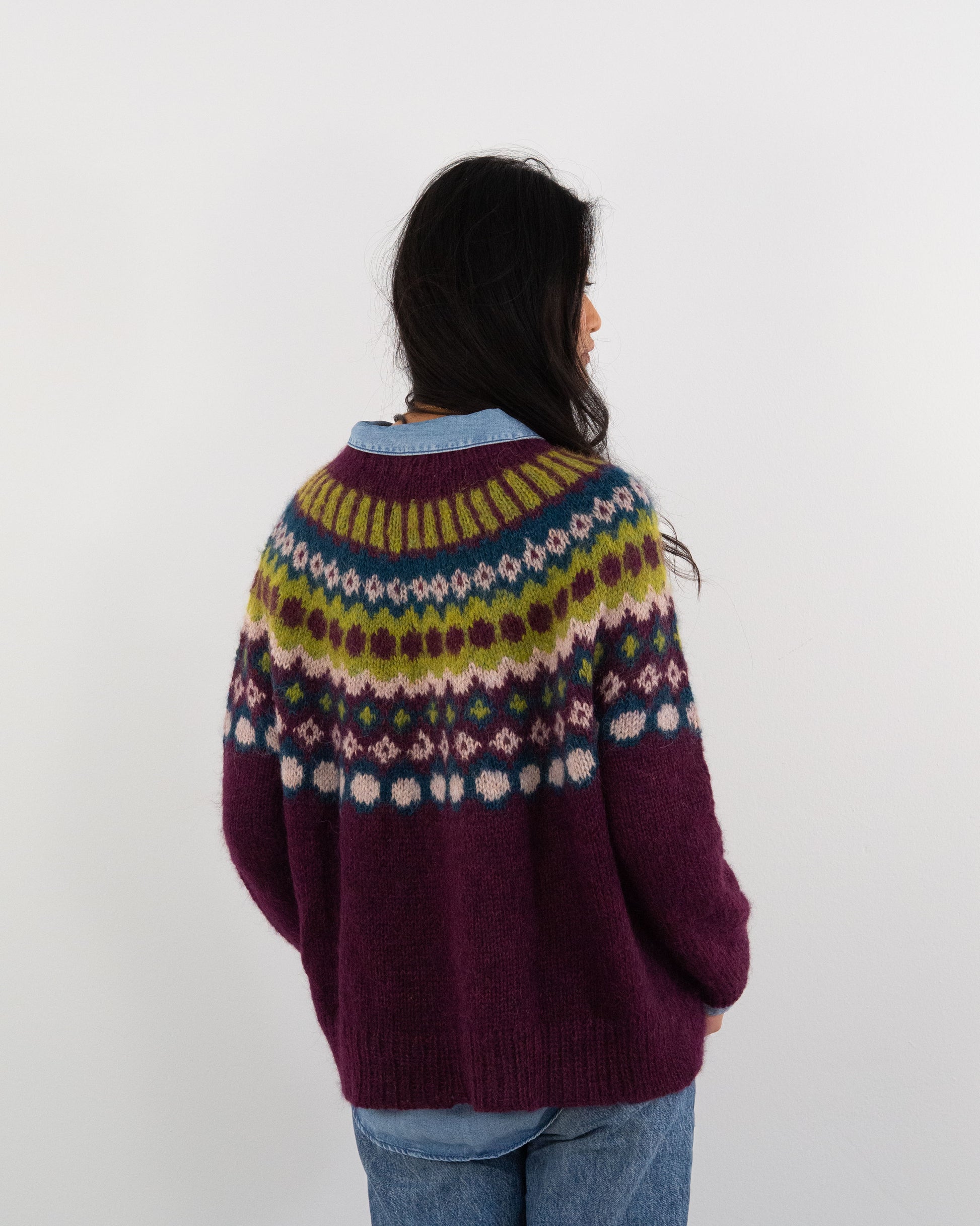 Este suave y ligero jersey tejido a mano combina calidez y elegancia. Con un diseño multicolor inspirado en motivos tradicionales, es una pieza única que destaca por su versatilidad y estilo. Es talla única, lo que garantiza un ajuste cómodo y favorecedor para todas las tallas.