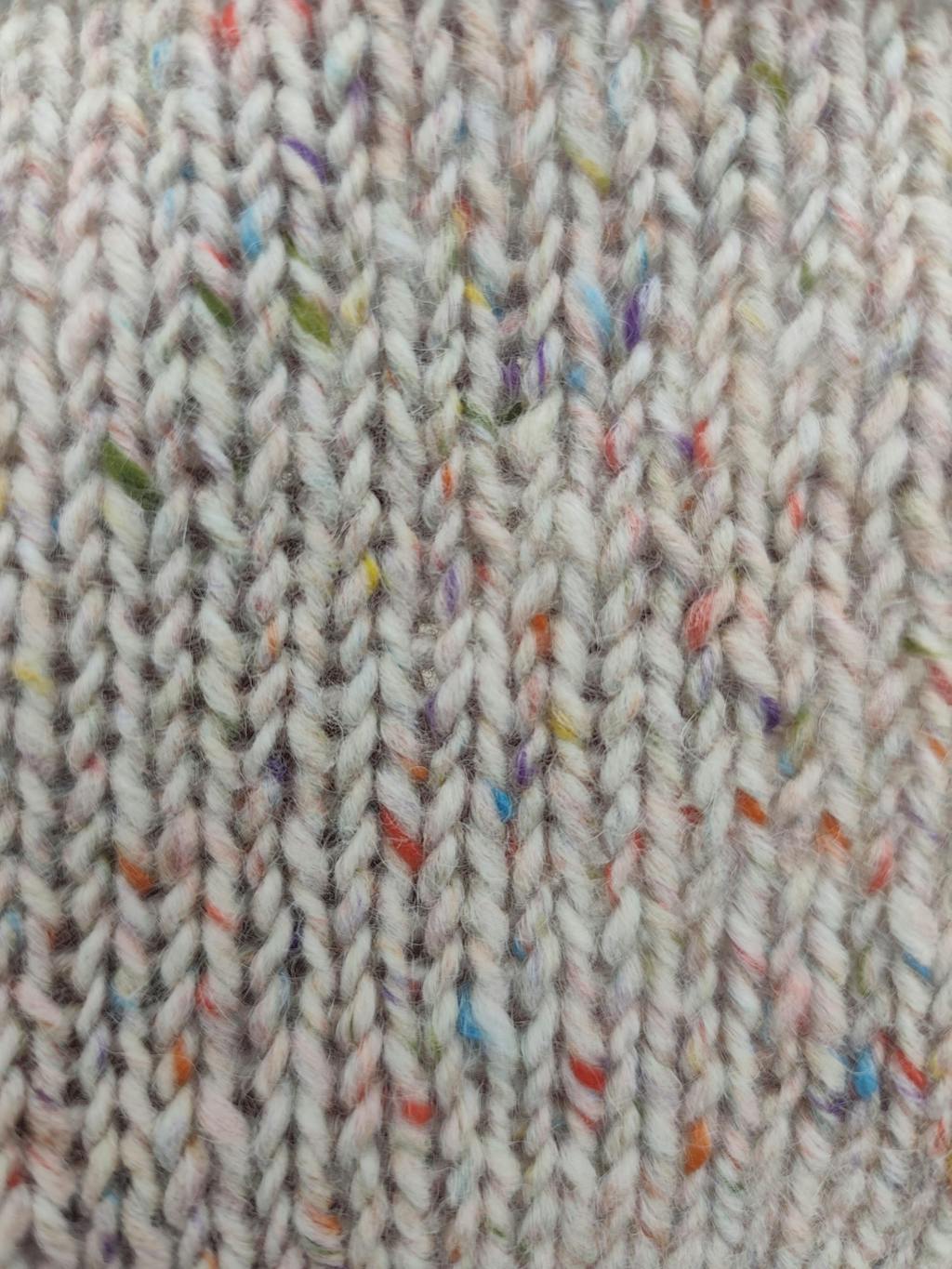 Contorno de pecho de la prenda acabada: 125-135 cm [49.25-53.25”] dependiendo del bloqueo. esta lana tiene mucha capacidad de bloqueo.